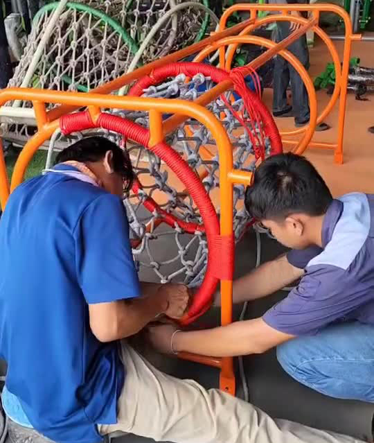 การติดตั้ง ติดตั้งขุดเจาะเพื่อตั้งฐานหรือเสาเครื่องเล่นให้มั่นคง เว้นขนาดของเครื่องเล่นและพื้นที่โดยรอบ เพื่อให้เด็กๆสามารถเล่นได้โดยไม่เกิดอันตราย ตรวจสอบ
