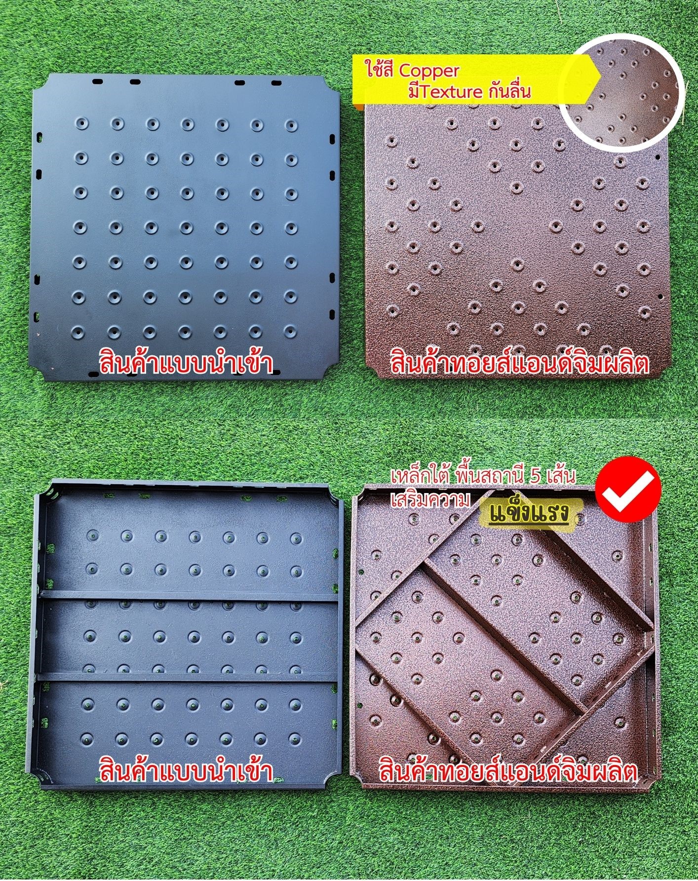 คุณภาพของสินค้า ผลิตและเลือกใช้วัสดุที่มีคุณภาพ แข็งแรง คัดสรรให้เหมาะสมกับการใช้งาน คำนึงถึงความทนทานและคุ้มค่าในการใช้งาน มีวัสดุ